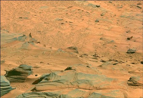 “勇气号”探测火星时拍得诡异照片,相中石上似有人像。