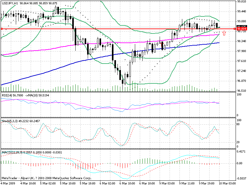 周一美日站稳200小时均线后一路盘延向上,最高冲至99.20,继续向它的100大关迈进。