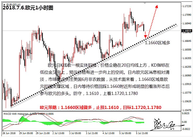 欧元策略:1.1660区域做多,止损1.1610,目标1.1720,1.1780