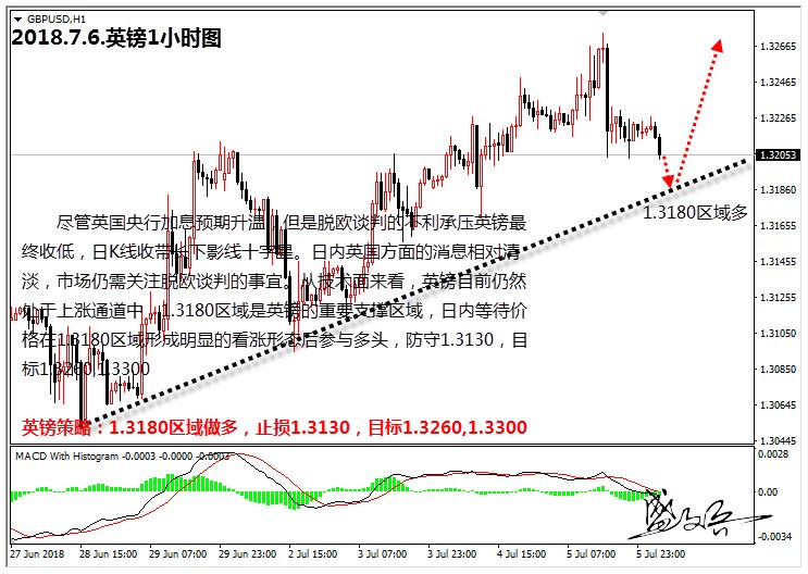 英镑策略:1.3180区域做多,止损1.3130,目标1.3260,1.3300