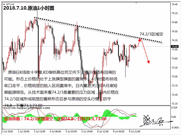 原油策略:74.2/3区域做空,止损74.8,目标73.3,73.00