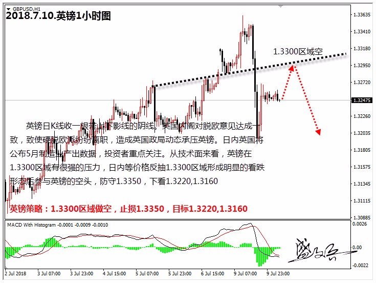 英镑策略:1.3300区域做空,止损1.3350,目标1.3220,1.3160