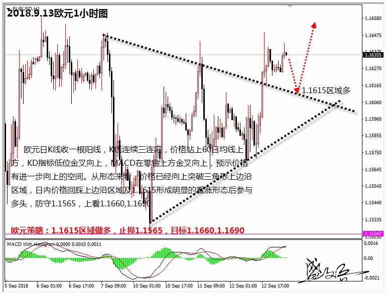 欧元策略:1.1615区域做多,止损1.1565,目标1.1660,1.1690