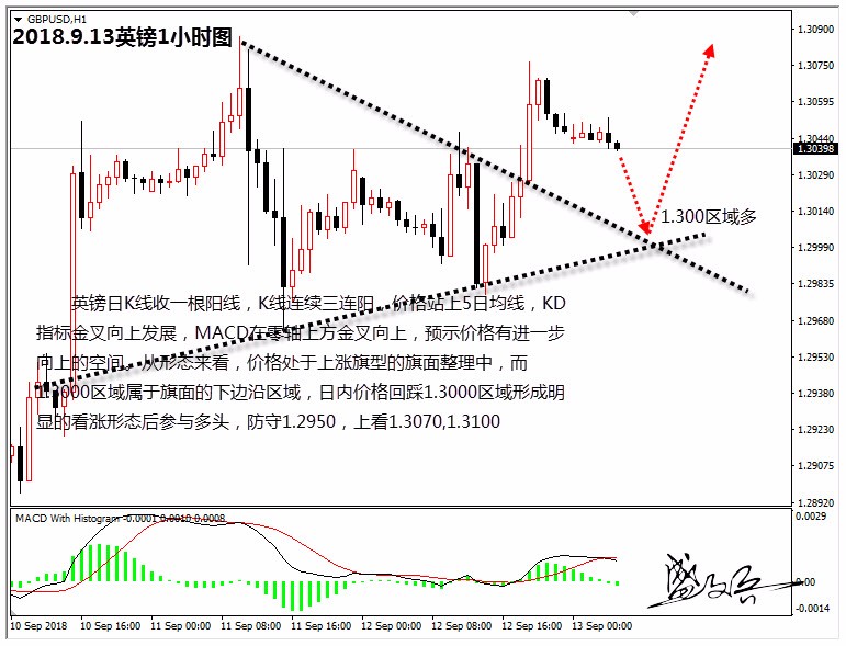 英镑策略:1.3000区域做多,止损1.2950,目标1.3070,1.3100