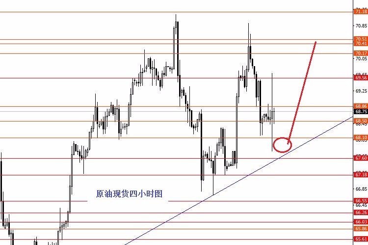 原油周先跌后涨,节奏上符合预期,周图收阳柱。从图形来看,原油仍在区间内震荡运行,且向上破位概率较大,上方关注70.40和72.10区域强阻力,在70.50区域没成功上破前,仍在下方震荡盘整。本周操作建议:68.10区域做多,止损67.10,目标看向70.20和70.50区域,若能成功上破后再看向72.10,若70.50不上去会在下方继续震荡盘整。