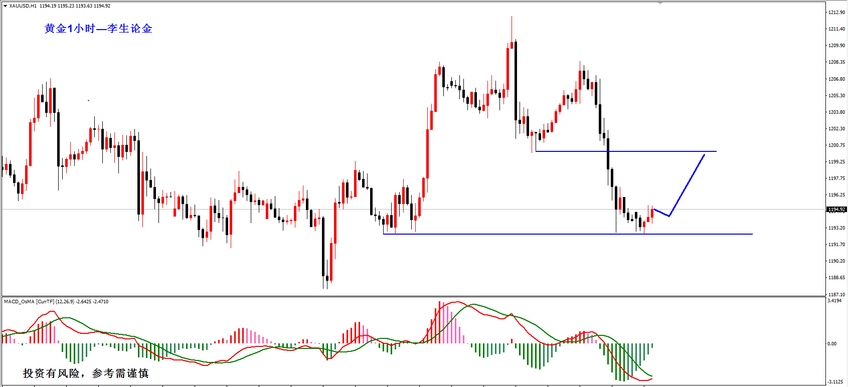 近期,黄金方面还是没能走出震荡区间,在1183-1214范围内震荡已经持续了大半个月,在此期间,无论多空,延续性都表现的很差,在没有破位之前还将维持震荡,当然,在长的震荡总有尽头,始终做好准备就行。