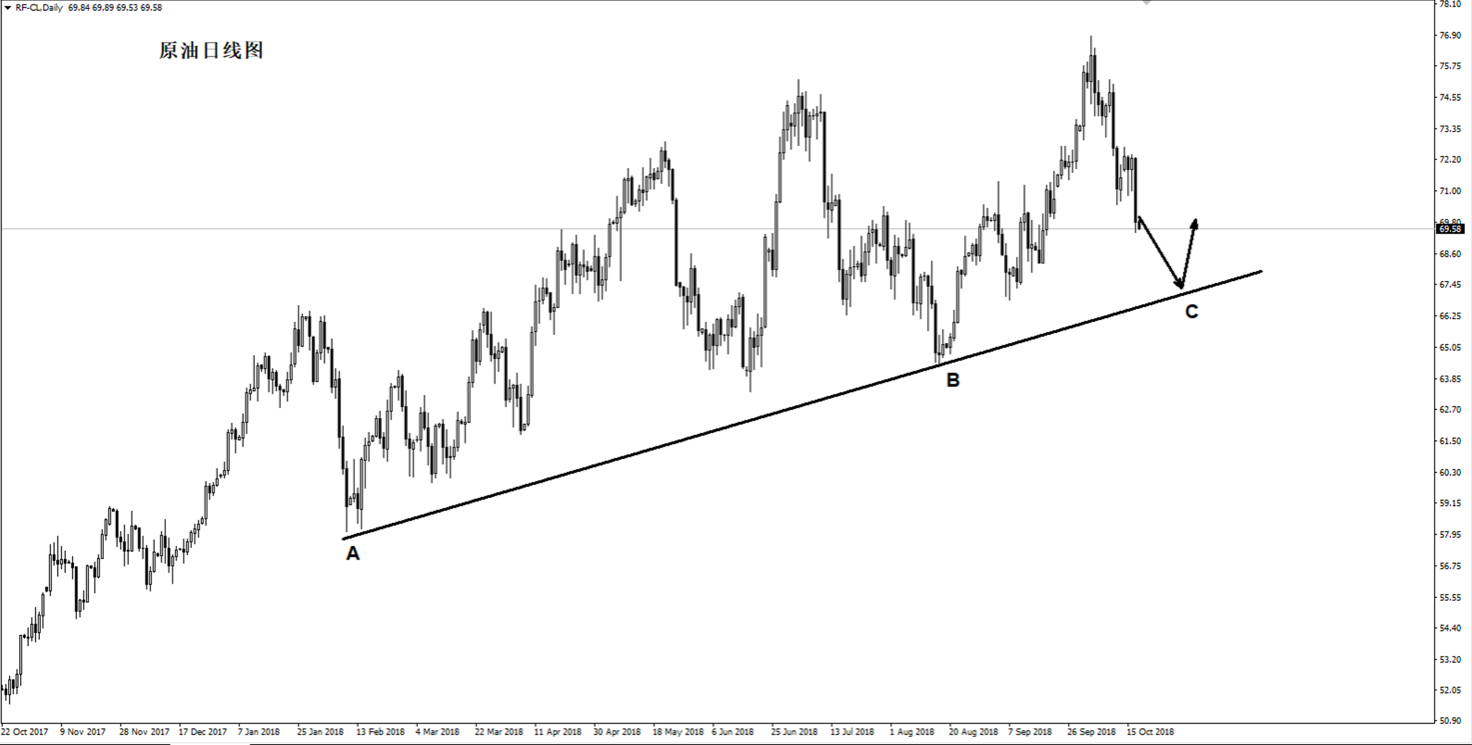 原油,昨天的日线上再次下跌,以73附近为压力点,此次下调和之前的走势一样,比较急促,并没有较大的反弹,本认为还是反弹一下再下跌,结果直接走了弱势的向下,短期将向67.50附近迈进,70.2-70.5的区域是顶底转换,以及起跌点的位置,这里承压之后继续回落。