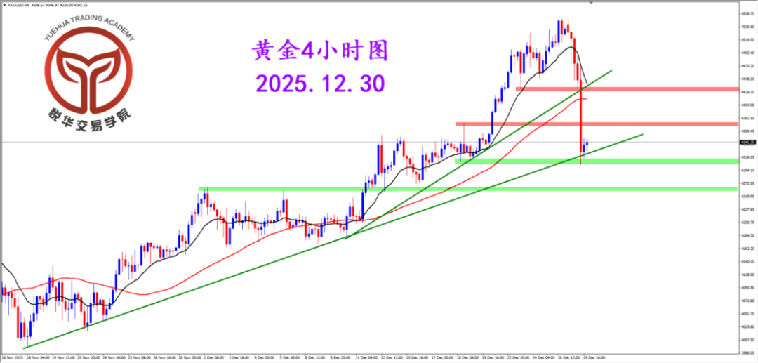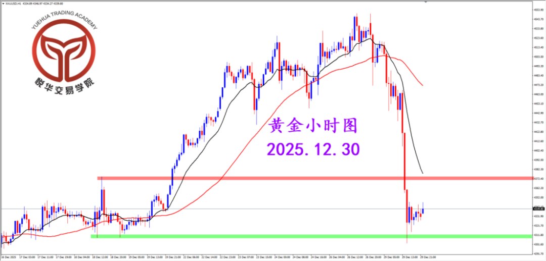 黄金天图,昨天行情收出极端阴线,出现了直线暴跌的极端表现,这波空头应该是技术面与消息面等多重因素所导致的,并且恐慌情绪有进一步蔓延的风险,只是不要追空。黄金4小时图,行情拉升到位后出现了诱多形态,虽然有些回落也属于正在表现,而晚盘行情引爆了恐慌下跌,跌破了多个支撑位置,目前暂时遇阻趋势线,这可能也只是短暂调整,之后可能会继续走弱。 黄金小时图,空头情绪爆发相当极端,恐慌情绪持续蔓延,但一定不要追空入场,目前市场正在进行必要调整,需要给予市场多一些时间做充分调整,注意交易节奏。 【交易思路】