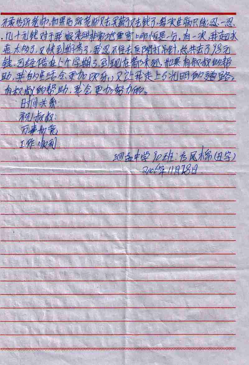 孩子们可能有点误会了,以为我是他的捐助人。有机会的话我会跟孩子们讲清楚的。请各位捐助人不要误会!廖凤棉的捐助人是来抢钱,韦秀娟的捐助人是christye