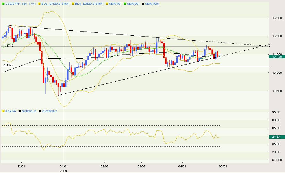 猪流感的破坏力没有市场想象的那样可怕,美国数据好于预期,风险厌恶降温,打压美元。纽约时段早盘美元/瑞郎触发1.1545、1.1500和1.1445下方止损,跌至1.1420。欧元/瑞郎早盘上涨到1.5072,后跌至1.5022。美元/瑞郎日图指标支持横盘盘整。初步支持在1.1170(3月25日日图低点),阻力在1.1715(1月23日日图高点)。