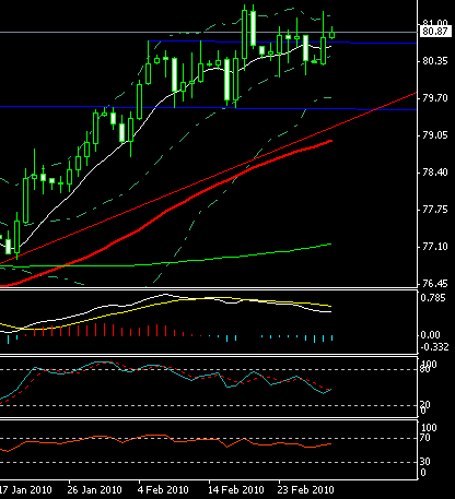 昨日收长上影小阳线,收盘再次回到矩形整理区间上轨附近,布林口收缩中,盘中留意上轨是否再次被突破,若上破,将展开新的一轮涨势,若下破布林中轨且收盘位于中轨之下,则美指将走出一波修正行情,但修正后仍将再次走高