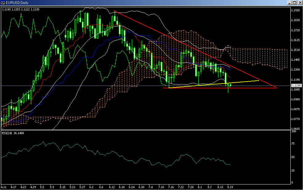 昨日欧元最高1.1149、最低1.1058、現在位于1.1130付近。従今日的図上看、欧元上方抵抗位在1.1210、下方支持位1.1080。今日建議将8月11日入場的1.1360欧元賣単進行穫利平倉、相信大家都有相当可観的回報。同時建議在1.1090付近買入欧元、止損設在1.1040。欧元目前破三角型後依然在鍥型内、予測近日会回復1.12台、然後再破鍥型。 |