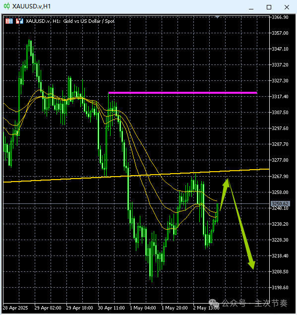 一句话看懂黄金Gold:短线横盘是下跌后的反弹性质,面临再次受阻下落,周内弱势基调。