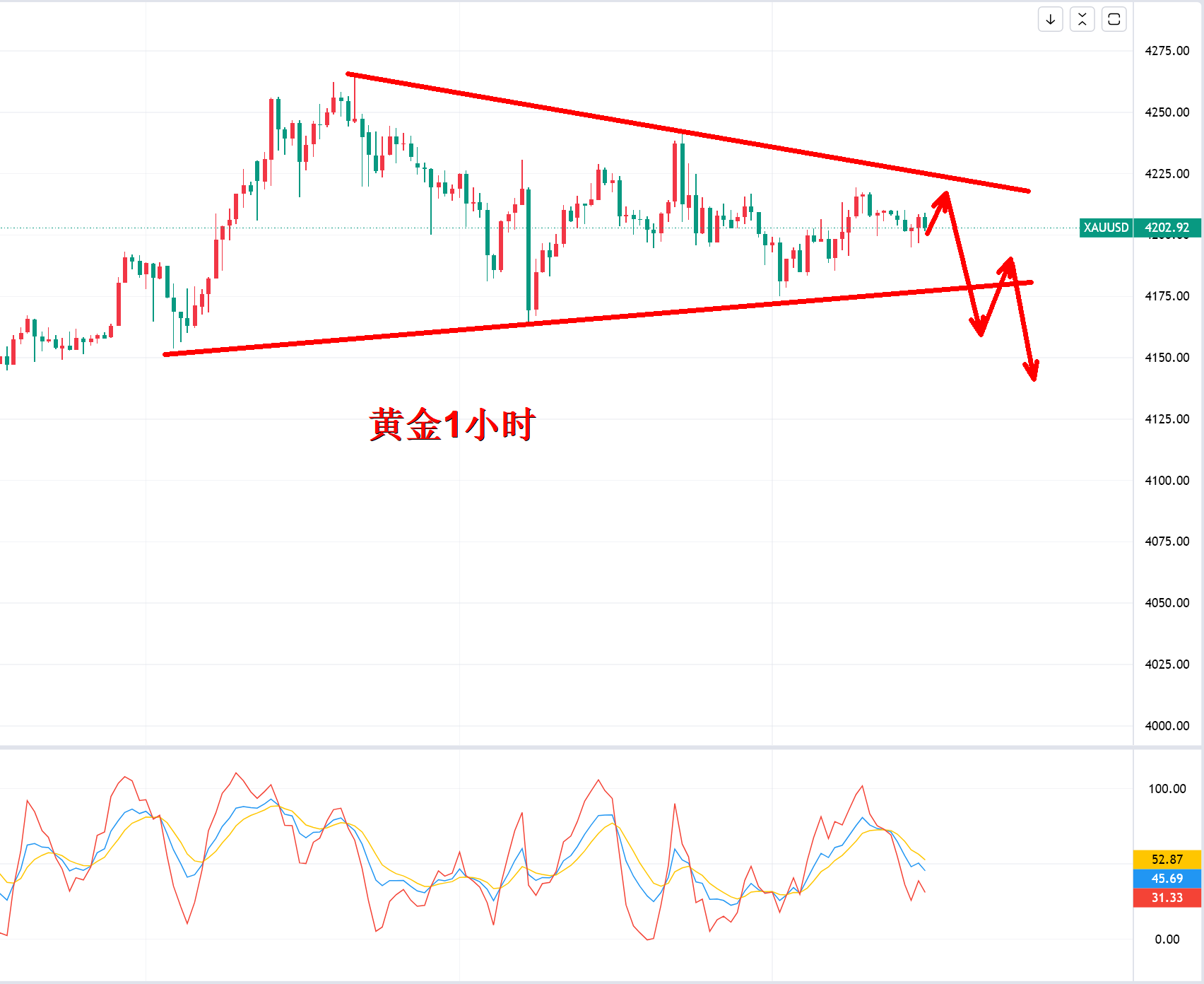 从技术结构而言,震荡已经接尾声了,向下三角形震荡往往下跌的可能性偏高,ADP就业数据和当周初请失业金对市场基本影响不大,越是市场清淡,失去耐心的时候,就更要随时准备迎接新的行情。今天,我还是前两天的观点不变,高空为主,中途可以搭配反弹多,但也只是波段为主,4215-4220美元作为今天空的入场点,前面4240美元上方决定多空,向下4185-4180美元,跌破前面4170-75支撑还能向下延续一波,谨防黑色星期五。