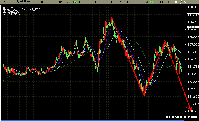 短线反弹于135.50结束,后市展开一轮较大调整行情,目标130.00附近。