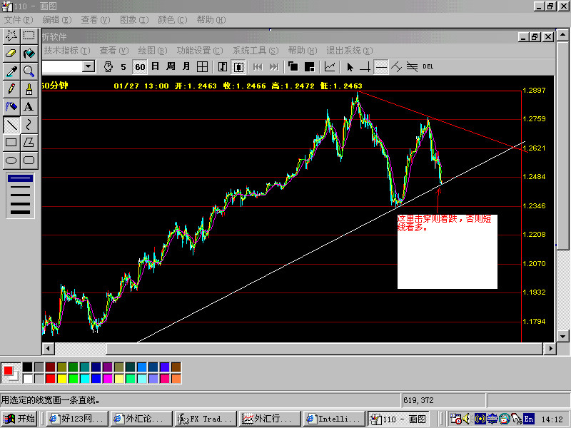 如果欧元向上突破1.2611 ,则有可能继续向上,目标1.300 ,如不能向上突破,而是向下突破,则可能要到1.2200附近。请看日线。